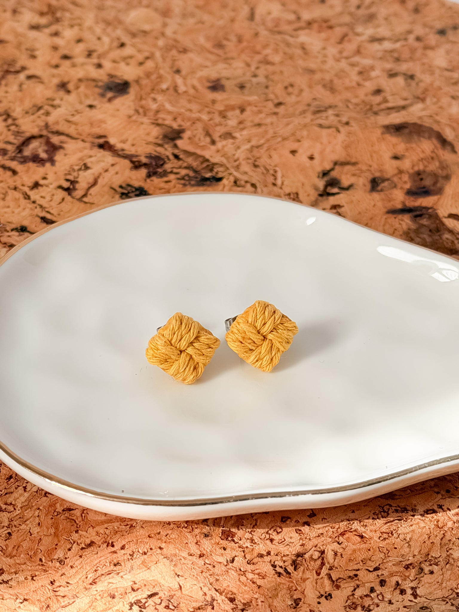 Crafted with precision and expertise, our Macrame square studs are the perfect addition to your jewellery collection. Made with a hypoallergenic stainless steel base and clasp, these earrings offer both style and comfort. Upgrade your look with these elegant square studs.