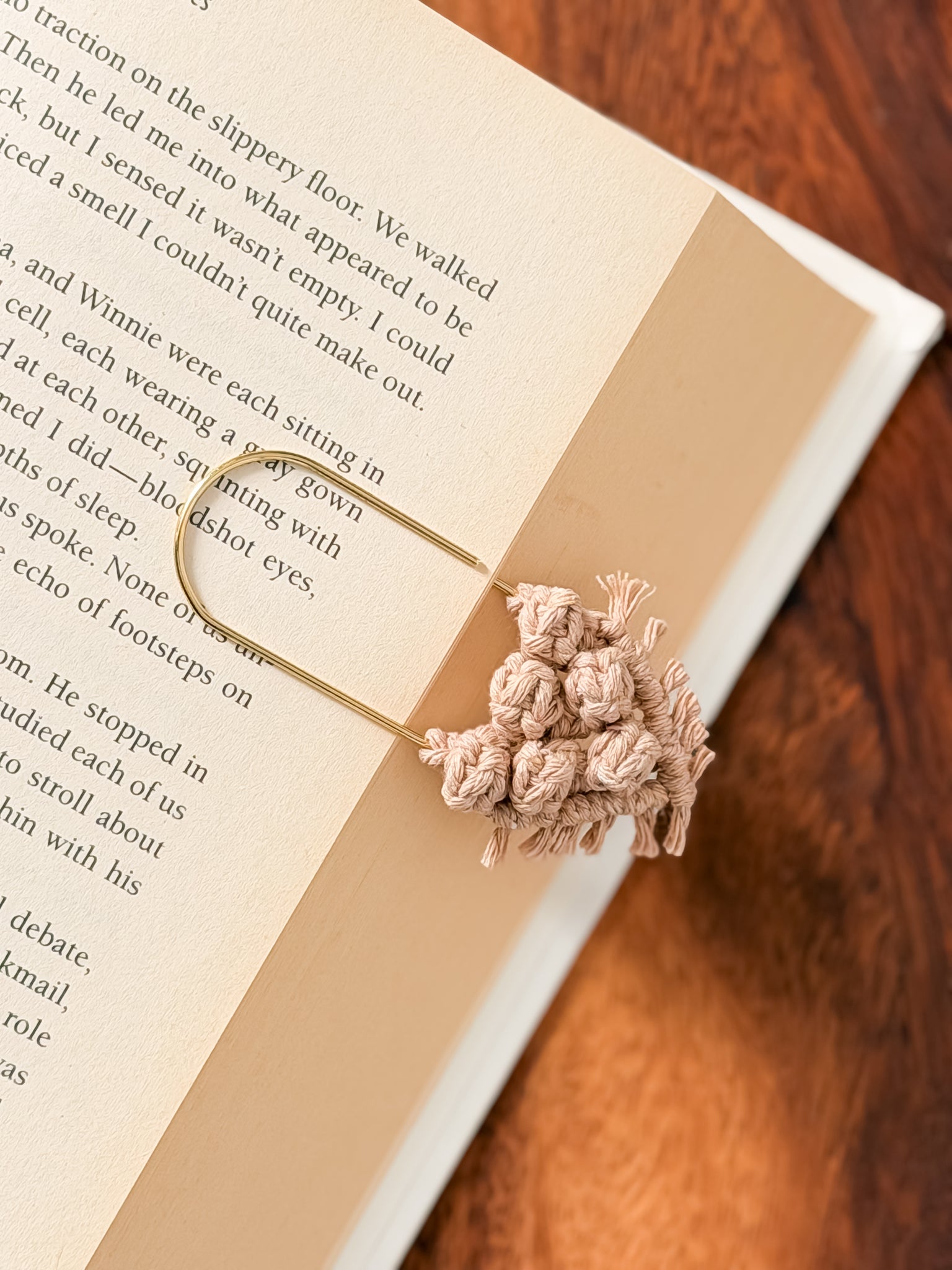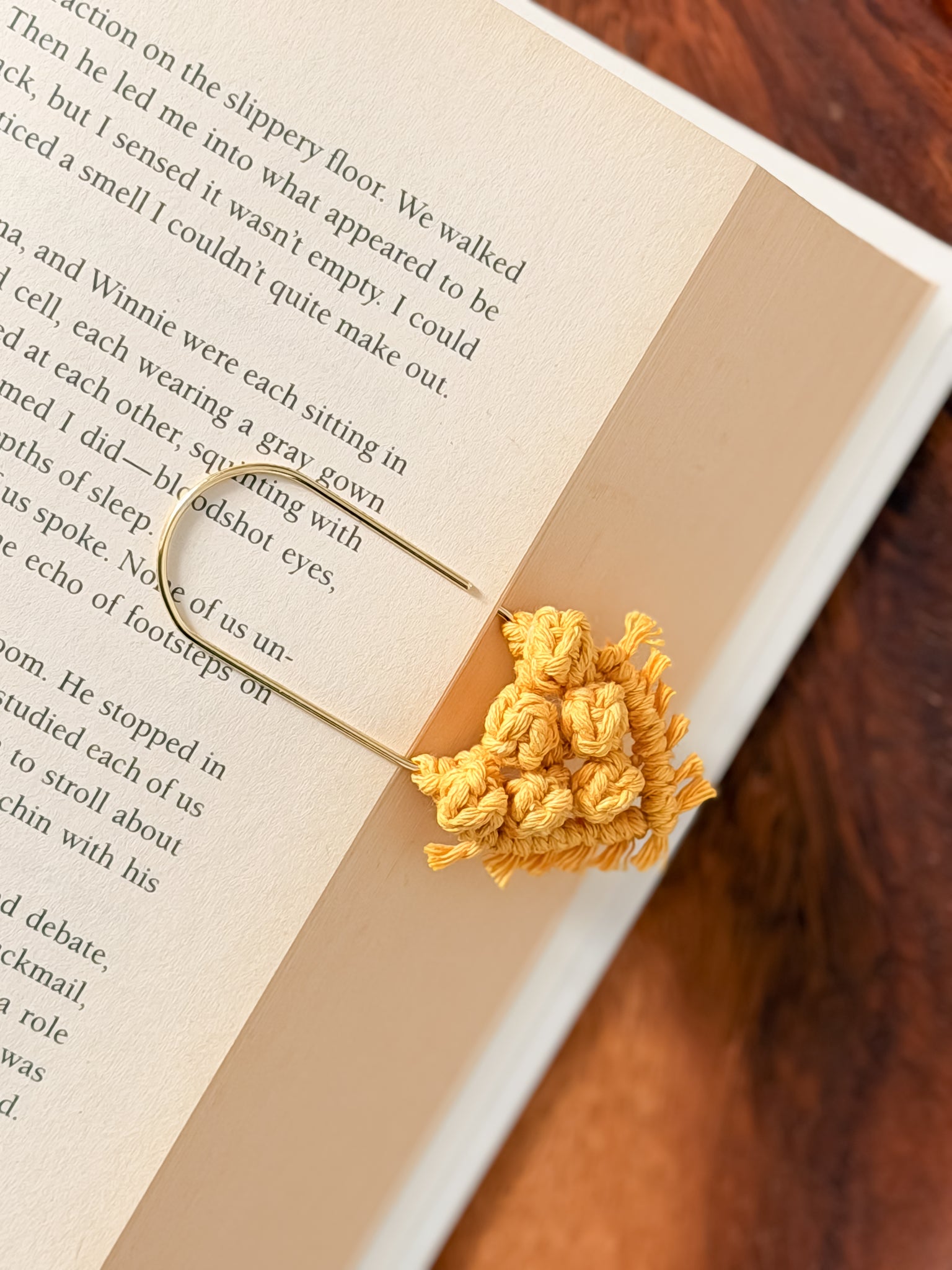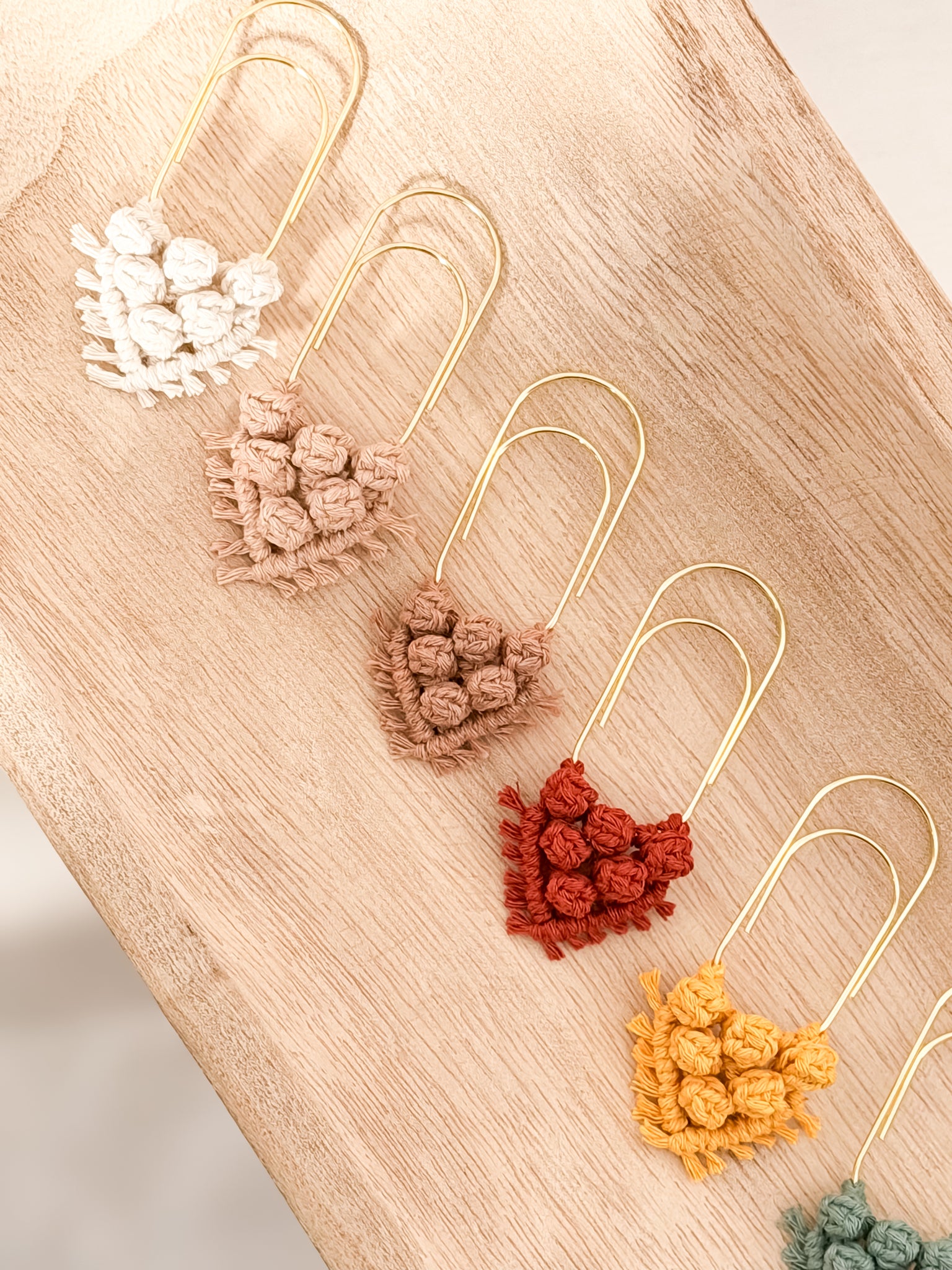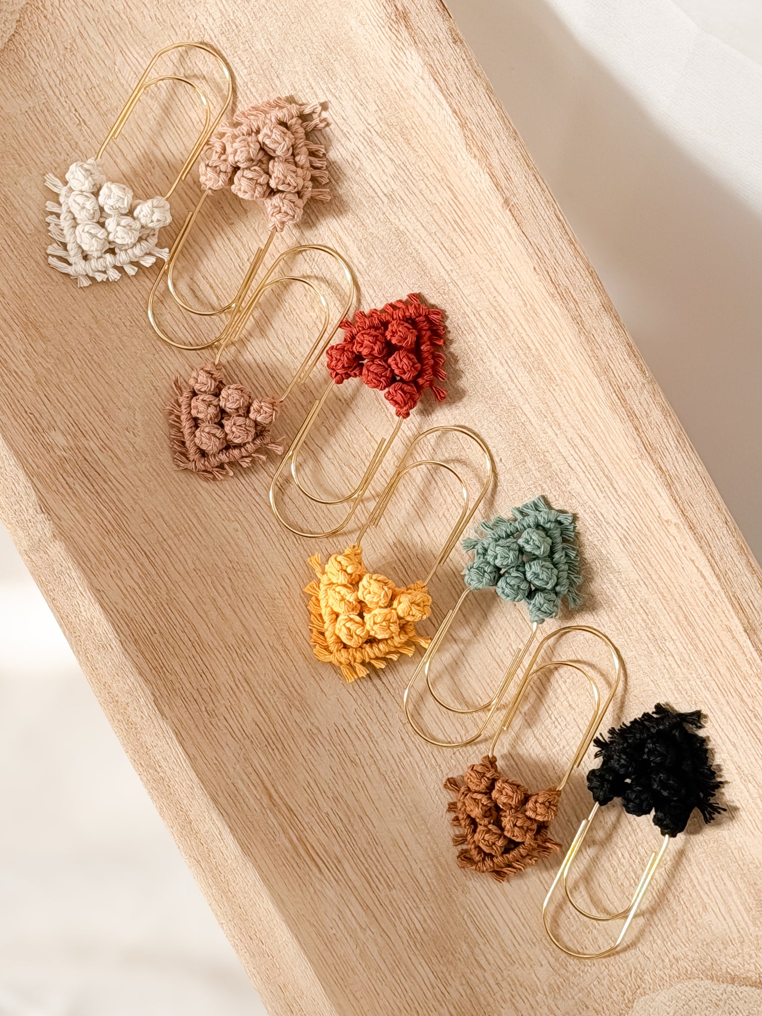 Handmade with 100% recycled cotton cord on a gold paperclip.