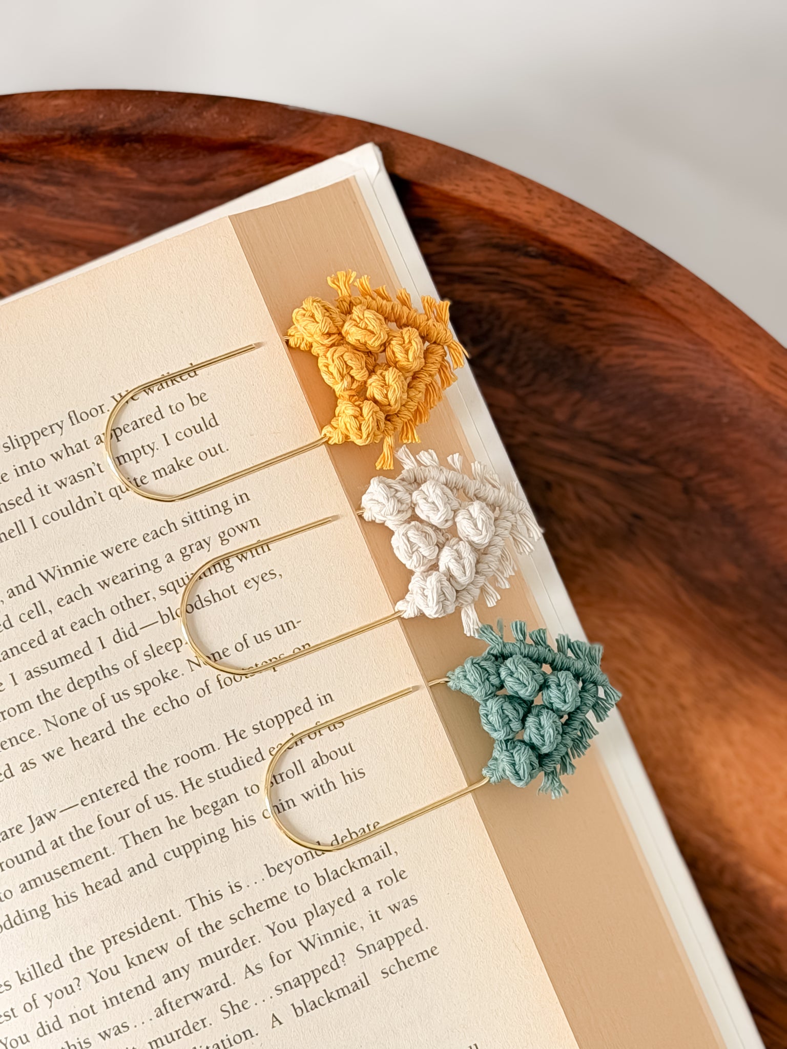 The Berry Bookmark combines artisanal macrame craftsmanship with practical design, featuring a delicate macrame detail attached to a sturdy paperclip. This unique accessory not only marks your page securely but also adds a touch of handmade elegance to your reading experience. Ideal for those who appreciate both function and distinctive style in their stationery.